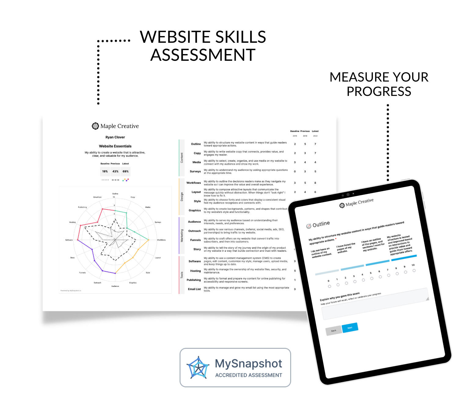 Discover your website proficiency and growth opportunities with our free website skills assessment. This is the same assessment used to establish a baseline for clients and students in our programs.